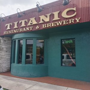 Titanic is the oldest brewpub in Miami FL. Located in Coral Gables on the southern side of The University of Miami, Titanic is a kilometre walk to the south-west from University Metrorail Station. Buses get you closer.